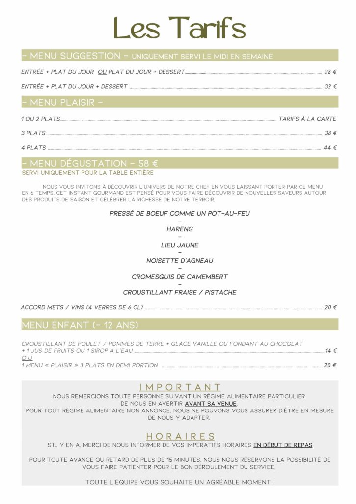 CARTE & TARIFS